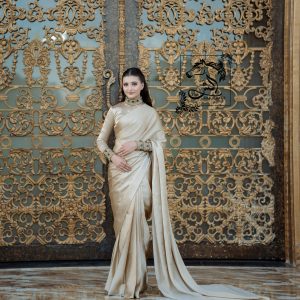 Gray-Gold Shimmer Silk Sarree