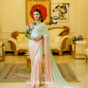 Ombre Blue and Pink Alia Bhatt Georgette Silk Sarree