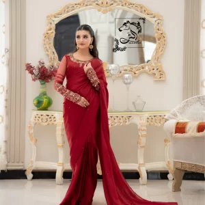 Rose Red Korean Silk Sarree